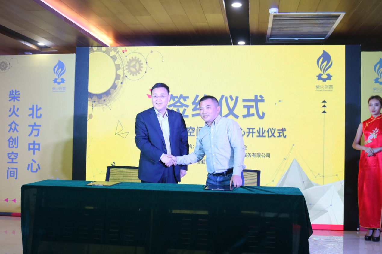 會(huì )上,河北諾亞海創(chuàng )人力資源服務(wù)有限公司總經(jīng)理王光軍與柴火創(chuàng )客空間創(chuàng )始人潘昊簽訂戰略合作協(xié)議,雙方成為戰略合作伙伴,未來(lái)將在服務(wù)創(chuàng )新創(chuàng )業(yè)過(guò)程中實(shí)現長(cháng)期友好合作。