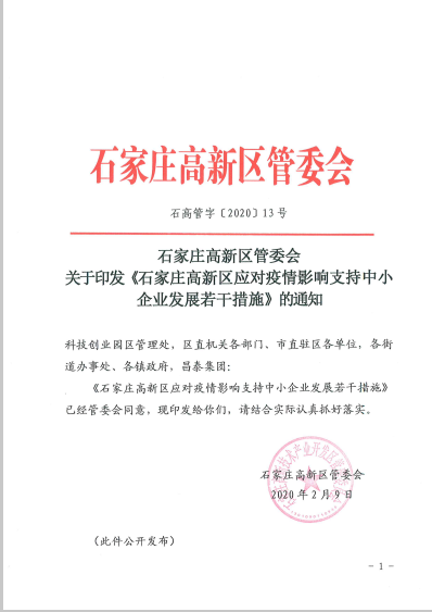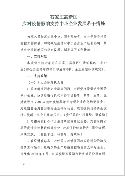 石家莊高新區應對疫情影響支持中小企業(yè)發(fā)展若干措施