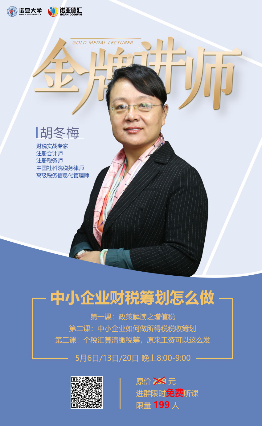 專(zhuān)家手把手教你做中小企業(yè)財稅籌劃!增值稅政策如何解讀?個(gè)稅匯算清繳怎么做?期待已久的《中小企業(yè)財稅籌劃怎么做》系列課程今晚上線(xiàn)!掃描第一張海報,直接進(jìn)入直播間,跟著(zhù)大咖學(xué)財稅籌劃。掃描第二張海報,進(jìn)入財稅保專(zhuān)屬群交流提問(wèn),更有諾亞德匯財稅資深從業(yè)顧問(wèn)為大家解惑。今晚20:00--21:00,不見(jiàn)不散!