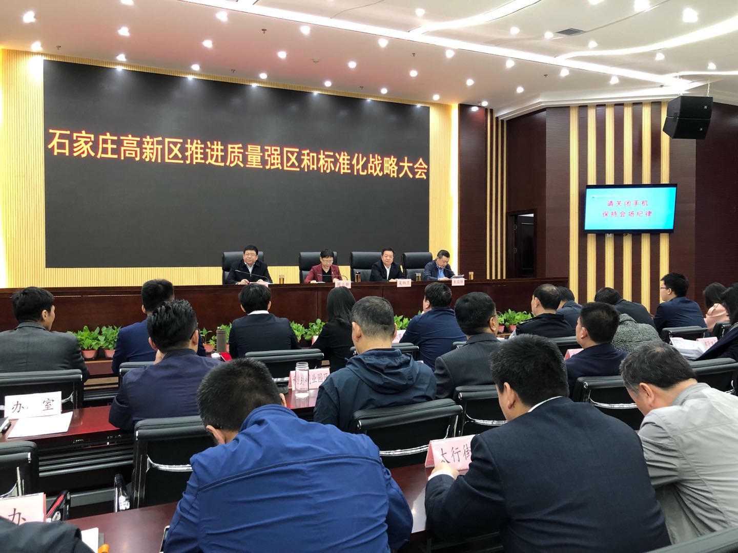 2019年3月21日,石家莊高新區推進(jìn)質(zhì)量強區和標準化戰略大會(huì )在高新區管委會(huì )順利召開(kāi)。石家莊市高新區工委副書(shū)記、區管委會(huì )主任周立新,石家莊市市場(chǎng)監督管理局局長(cháng)劉忠厚,高新區質(zhì)量強區戰略小組成員單位負責同志及企業(yè)代表共計一百余人到場(chǎng)參會(huì )。