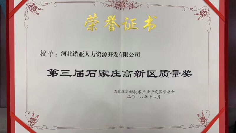 此次榮譽(yù)是對諾亞堅持科學(xué)管理、統籌規劃,實(shí)施質(zhì)量標準化長(cháng)效管理機制的肯定,河北諾亞將繼續全面做好人力資源質(zhì)量和標準化工作,推進(jìn)人力資源外包科學(xué)管理,力爭為更多企業(yè)提供專(zhuān)業(yè)、可信賴(lài)的人力資源服務(wù)。