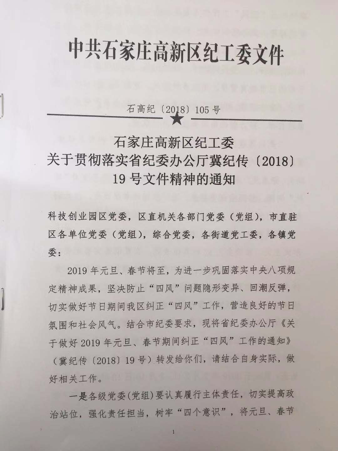 按照諾亞黨總支和各個(gè)支部的安排部署,請大家提高重視程度,認真學(xué)習、貫徹《石家莊高新區紀工委關(guān)于貫徹落實(shí)省紀委辦公廳冀紀傳【2018】19號文件精神的通知》,防止“四風(fēng)”問(wèn)題隱形變異、回潮反彈,切實(shí)做好節日期間糾正“四風(fēng)”工作,主動(dòng)監督和接受監督,營(yíng)造良好的節日氛圍和社會(huì )風(fēng)氣。