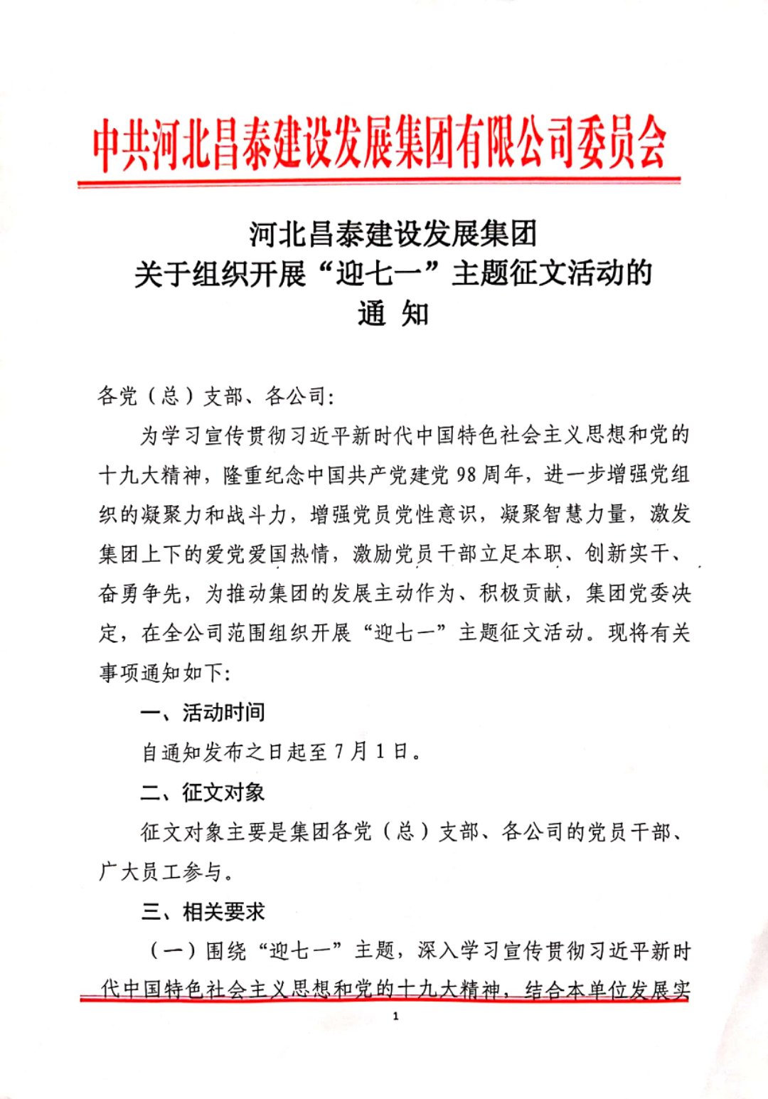關(guān)于組織開(kāi)展“迎七一”主題征文活動(dòng)的通知
