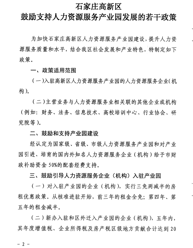 石家莊高新區鼓勵支持人力資源服務(wù)產(chǎn)業(yè)園發(fā)展的若干政策