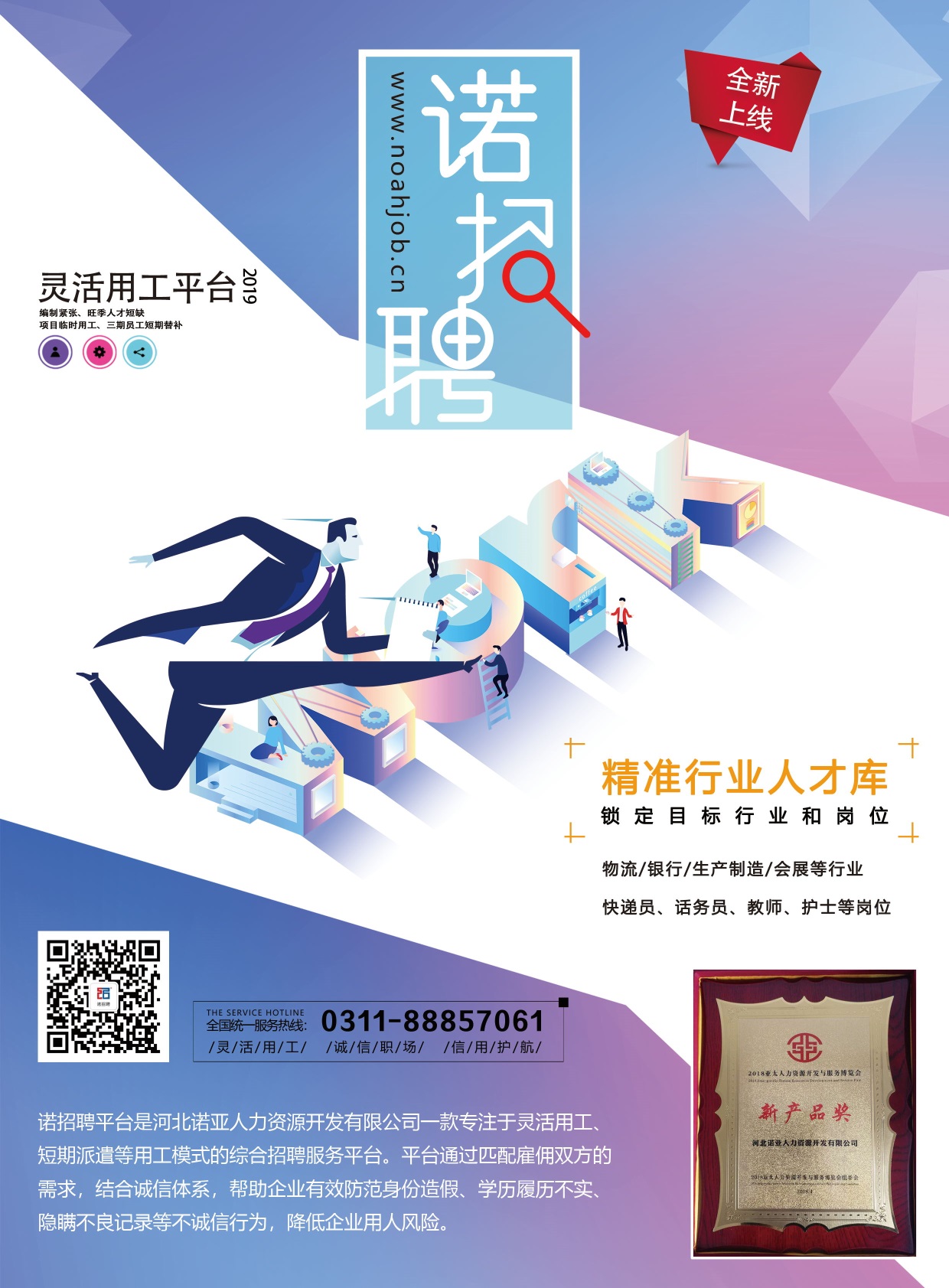 為解決就業(yè)難和招工難這兩大難題,河北諾亞人力資源開(kāi)發(fā)有限公司提供了專(zhuān)業(yè)的平臺為企業(yè)和求職者進(jìn)行匹配——諾招聘平臺,真實(shí)可靠的靈活用工平臺。